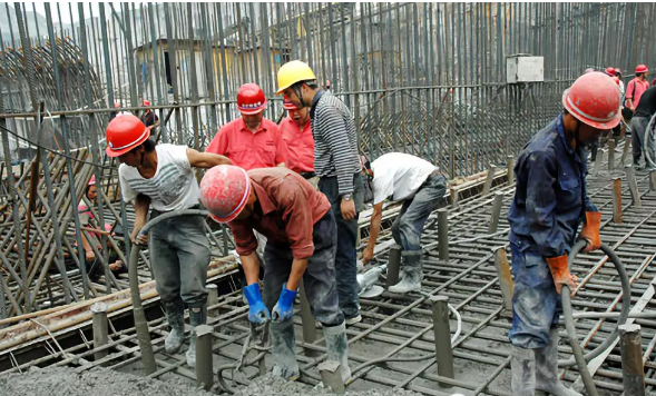 4、澆筑混凝土?xí)r應(yīng)分段分層進(jìn)行,每層澆筑高度應(yīng)根據(jù)結(jié)構(gòu)特點(diǎn)、鋼筋疏密決定。一般分層高度為插入式振動(dòng)器作用部分長(zhǎng)度的1.25倍,大不超過500mm,平板振動(dòng)器的分層厚度為200mm。